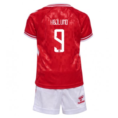 Dětský Fotbalový dres Dánsko Rasmus Hojlund #9 ME 2024 Domácí Krátký Rukáv (+ trenýrky)